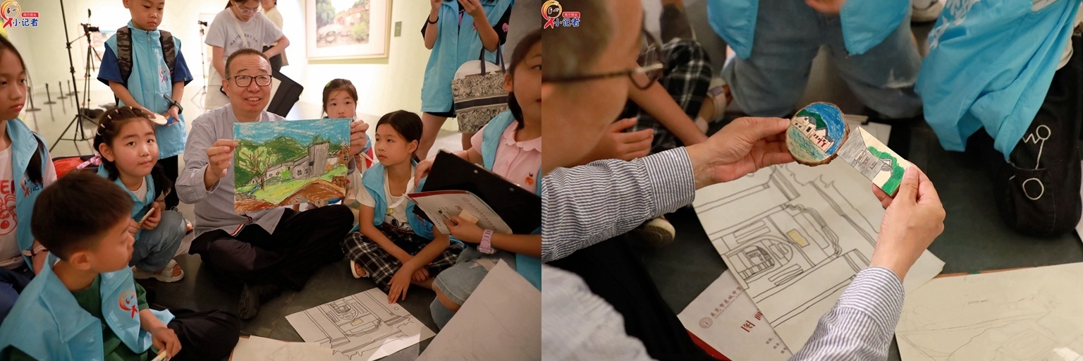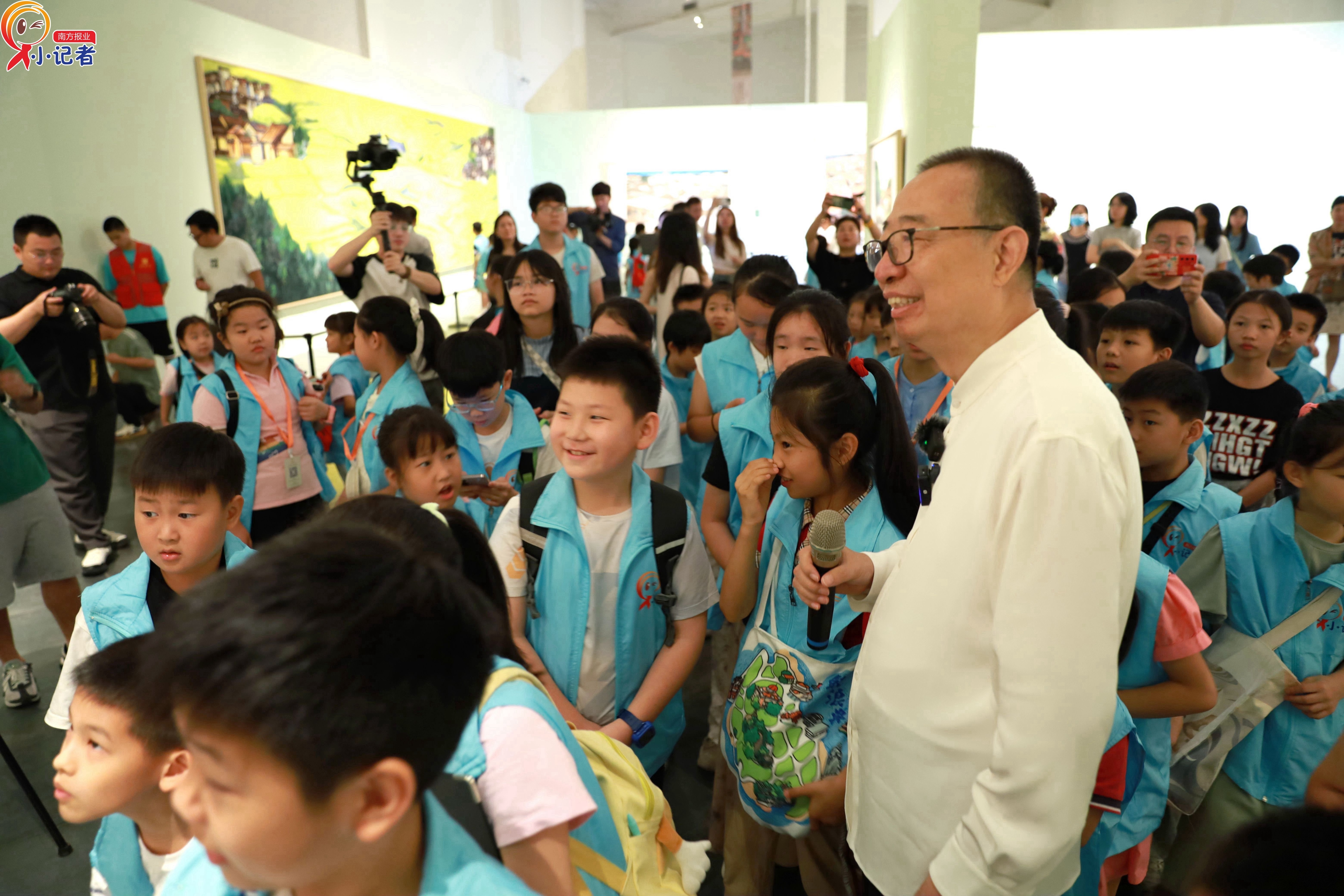 在参观“寄情大湾区——潘鲁生艺术作品巡回展”过程中,中国文学艺术界联合会副主席、中国民间文艺家协会主席潘鲁生为小记者们导览,亲切解读作品中的艺术内涵,详细介绍了每一个作品背后的故事。